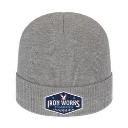 The acrylic or acrylic/polyester blend knit cap with a solid color ribbed cuff and polyester fleece lined earband.